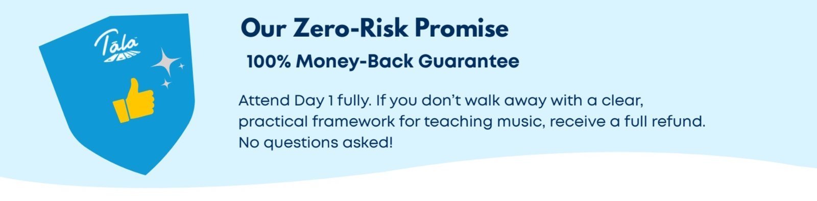 Attend Day 1 fully. If you don’t walk away with a clear, practical framework for teaching music, receive a full refund.